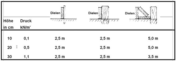 bescheidenen Angaben über zulässige Belastungen, Abstände der Abstützungen